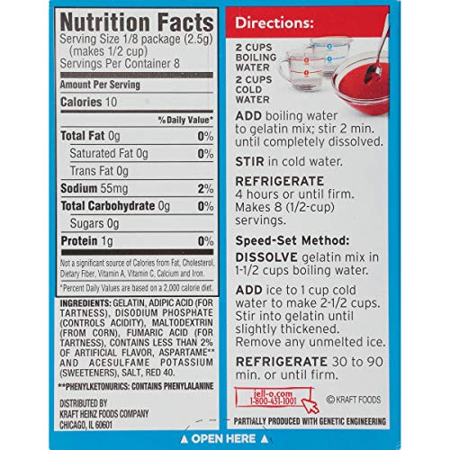Sugar free jello nutrition label. revolution-nutrition.com › product › isolate-splashISOLATE SPLASH - Revolution Nutrition Revolution Nutrition™ has earned a solid reputation as the best tasting sports supplements on the market today. We always take the time and effort to create flavours that are simply second to none so that each and every one of our consumers is always 100% satisfied. › articles › jelloHealth Benefits Of Jello, Side Effects, And How To Make Sep 13, 2022 · Most jello brands, however, opt for synthetic colors and artificial flavoring agents. Check the ingredients list on the label if you want to buy jello with natural coloring agents. Note: Jello is not a vegetarian or vegan dessert as it is made from gelatin extracted from boiled bones, connective tissues, and other animal products. mylifecookbook.com › low-carb-jello-popsKeto Jello Popsicles - just 2 ingredients for this sugar free ... As I mentioned above these creamy popsicles only need two simple ingredients: heavy cream and sugar free flavored gelatin. Note I used the 0.3 oz package of sugar free jello. Because I used sugar free flavored gelatin, there is a lot of flavors to pick from. In this update I made our favorite flavors – lemon, orange, lime and strawberry. › p › jell-o-instant-sugar-free-fatJELL-O Instant Sugar Free Fat Free Vanilla Pudding & Pie ... Jell-O Sugar Free Vanilla Instant Pudding Mix offers a delicious flavor, whether you eat it as a treat or use it as an ingredient in your favorite dessert recipe. Or use to create delicious recipes like a rich poke cake or vanilla pudding pie! This sugar free pudding is also fat free per serving and is 1/3 the calories of regular chocolate pudding.