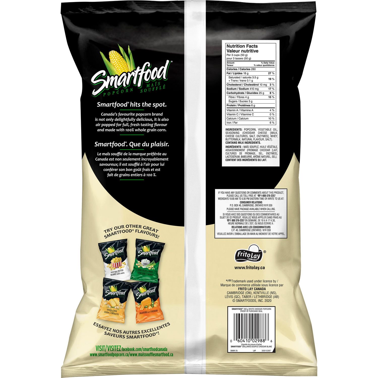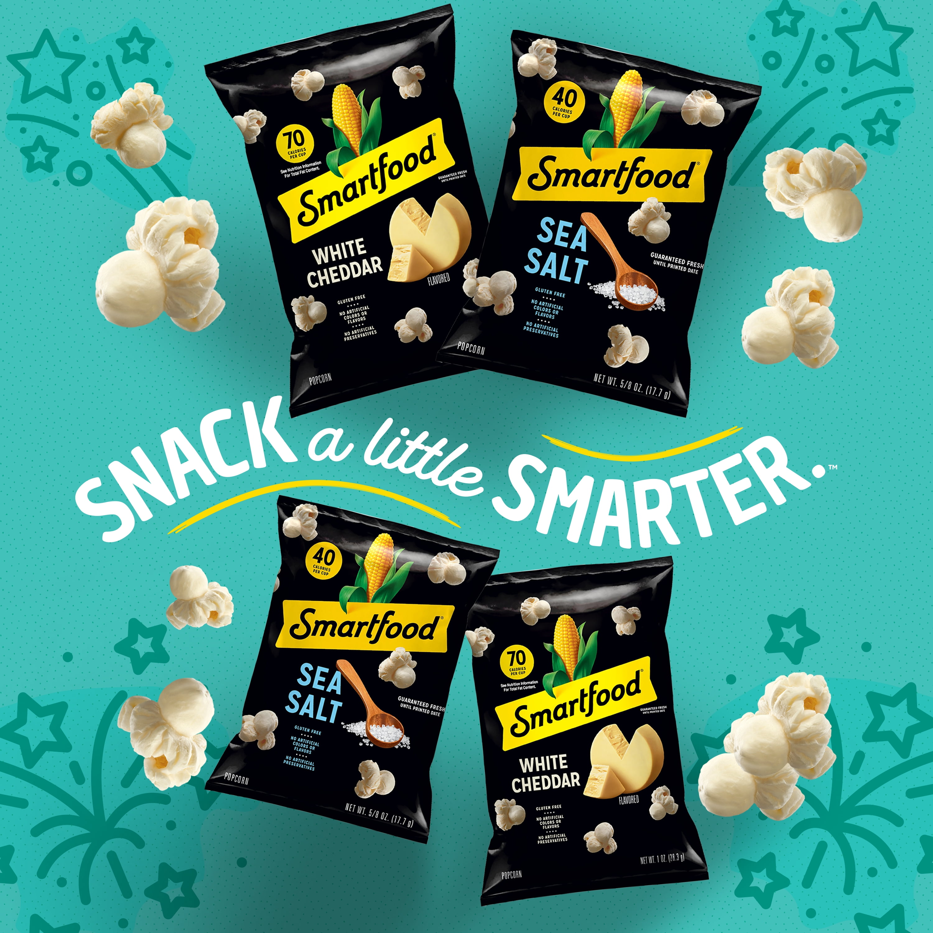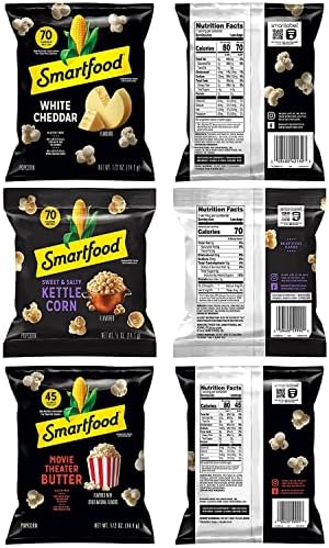 › Smartfood-Popcorn-Flamin-CheddarSmartfood Popcorn Flamin' Hot & White Cheddar Variety Pack ... Smartfood first hit shelves in 1985 with a very smart idea: to create great tasting, ready-to-eat popcorn with quality ingredients. Today, you may know us for our notorious little black bag of White Cheddar deliciousness, but we also make a lineup of other air-popped flavors, ranging from Movie Theater Butter to Hot Buffalo and Sour Cream & Onion.