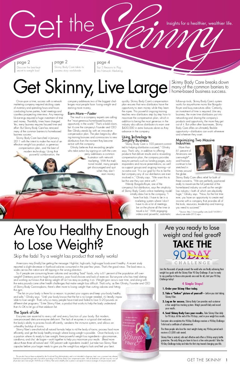 Skinny Body Care Distributors - LinkedIn Not only can Skinny Fiber help you feel full and eat less, but our proprietary fat burning blend also helps reduce fat absorption, flush ugly toxins, gently ...