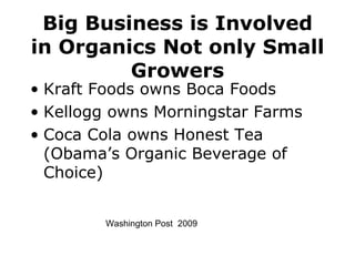 Organic 101: What the USDA Organic Label Means | USDA USDA certified organic foods are grown and processed according to federal guidelines addressing, among many factors, soil quality, animal raising practices, pest and weed control, and use of additives. Organic producers rely on natural substances and physical, mechanical, or biologically based farming methods to the fullest extent possible.