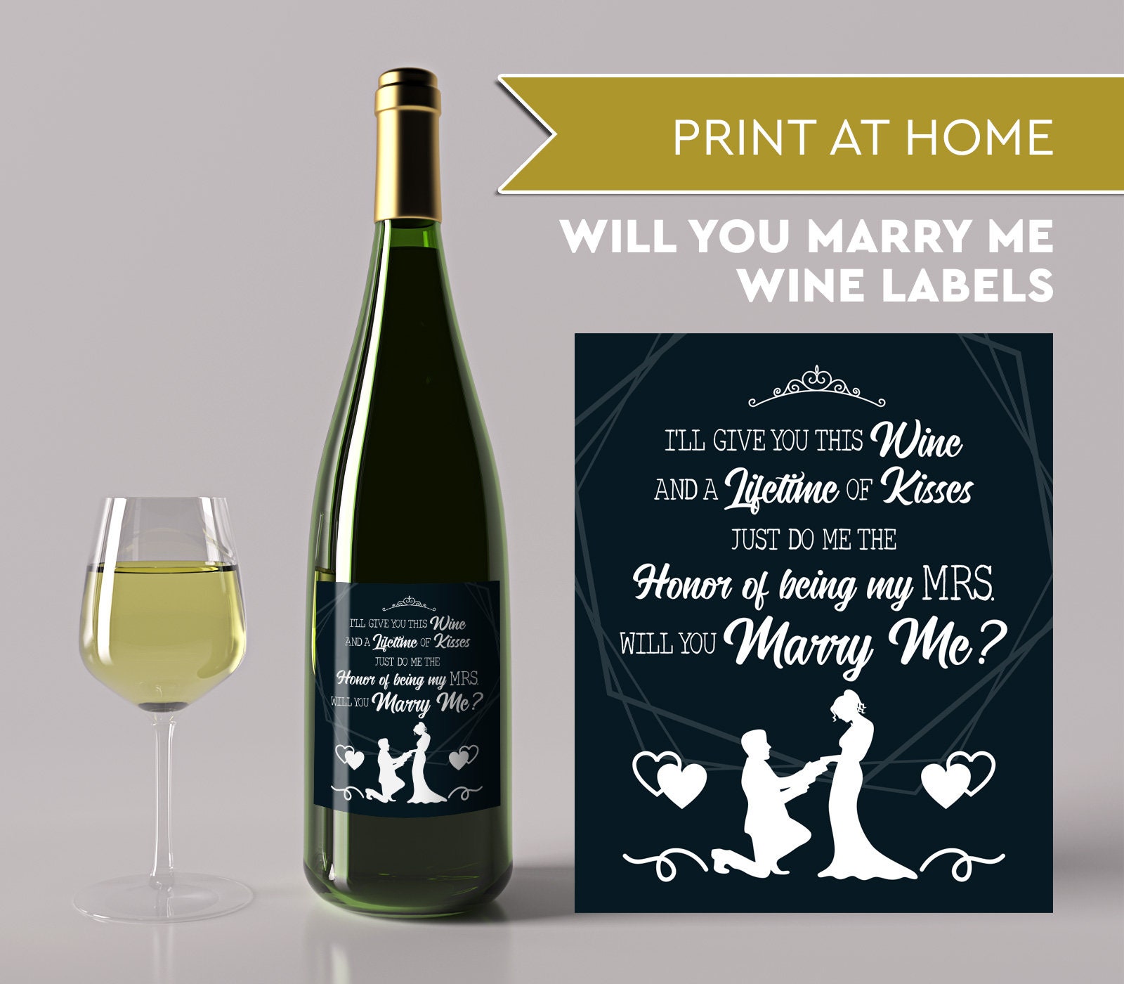 Proposal Wine Label Will You Marry Me Sticker Engagement Announcement Proposal Prop Printed Wine Bottle Label Engaged Gift for Her Love 9197
