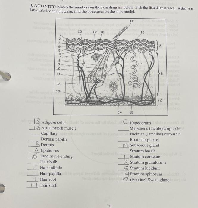 Solved 1. ACTIVITY: Match the numbers on the skin diagram ...