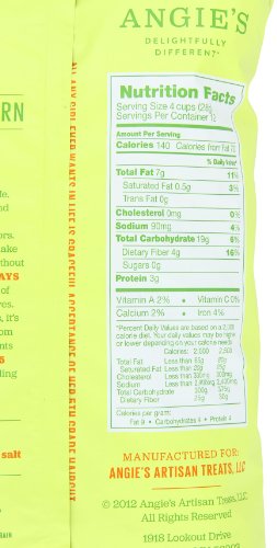 Nutrition Facts for Angie's BoomChickaPop Sea Salt Popcorn Total Carbohydrate 16g. 7%. Dietary Fiber 2g. Total Sugars 0g. 0%. Includes 0g Added Sugars. Protein 2g. 0% Vitamin D 0mcg. 0% Calcium 0mg.