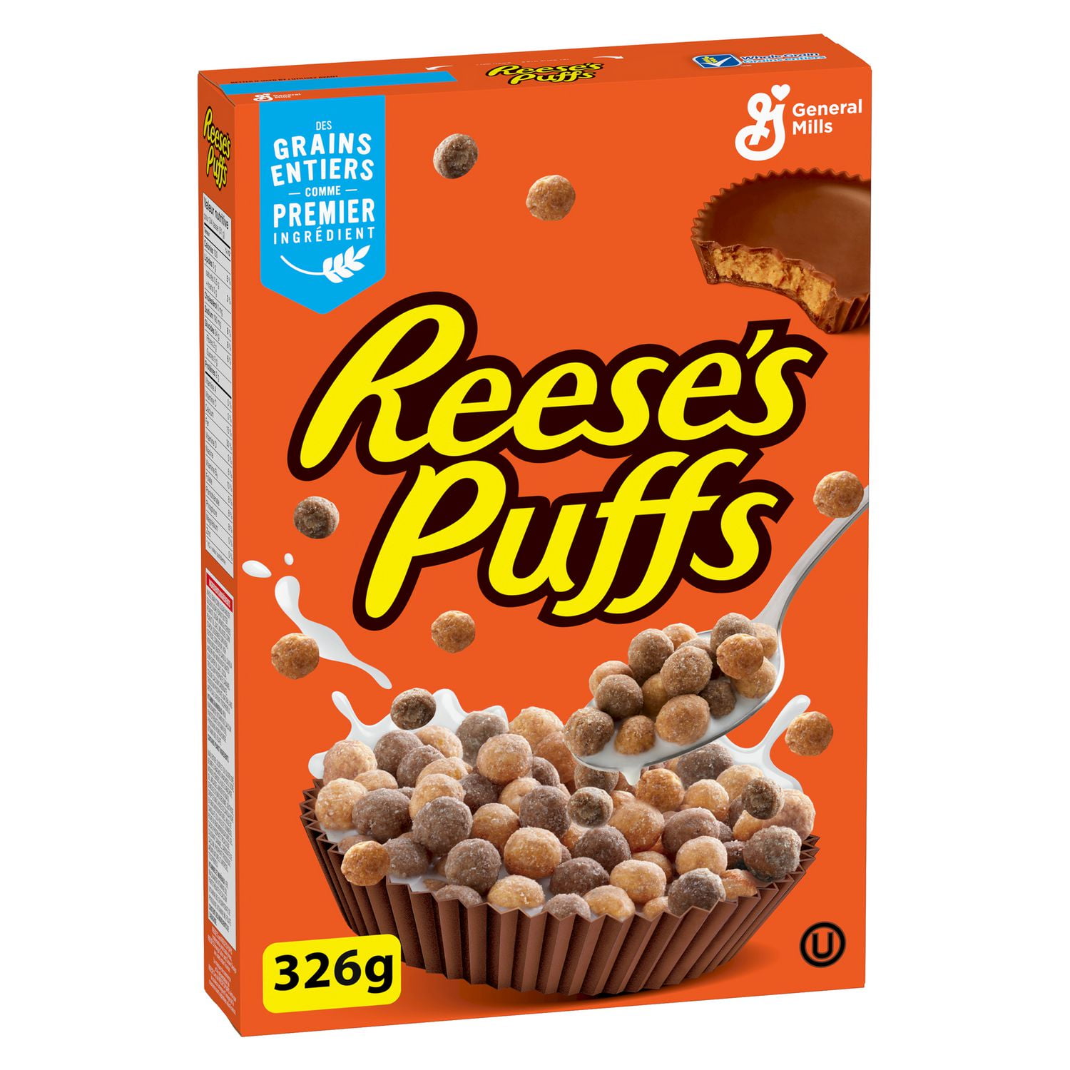 General Mills Reese's Puffs Cereal - Shop Cereal & Breakfast at H-E-B Reese's Puffs Cereal. About 25 Serving Per Container. Serving Size, 1.00 cup(39g). Amount Per Serving. Calories, 170. Calories from Fat, 0. % Daily Value* ...