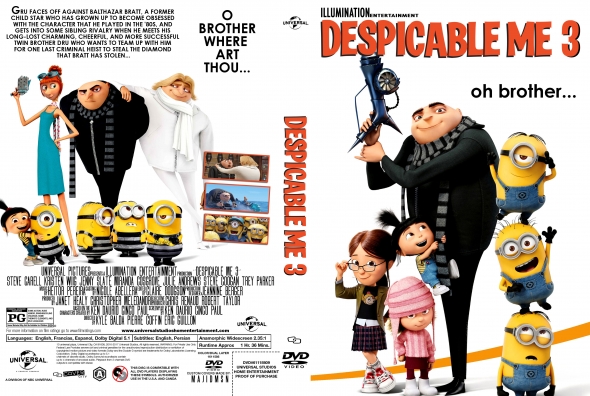 Despicable Me 3 (2017) R1 Blu-Ray Cover & Labels Despicable Me 3 (2017) R1 Blu-Ray Cover & Labels Cover by Rich86 Share Tweet Pin it Email WhatsApp Each gallery might contain multiple covers, with a free account you can only download first cover from the gallery at a lower resolution, to be able to see all the images in this gallery (where available) please get VIP Membership Account 4217 × 2334 Despicable Me by Pierre Coffin, Chris Renaud, Pierre Coffin, Chris ... Editorial Reviews. Despicable Me is the kind of kiddie flick that has enough fart jokes to keep the small fries giggling, and just enough heart to keep their parents smiling. And to the credit of the filmmakers, they maintain that equilibrium fairly well. The early scenes, focusing on ambitious master criminal Gru's bumbling efforts to outsmart a rising star in the super-villain community, are ...